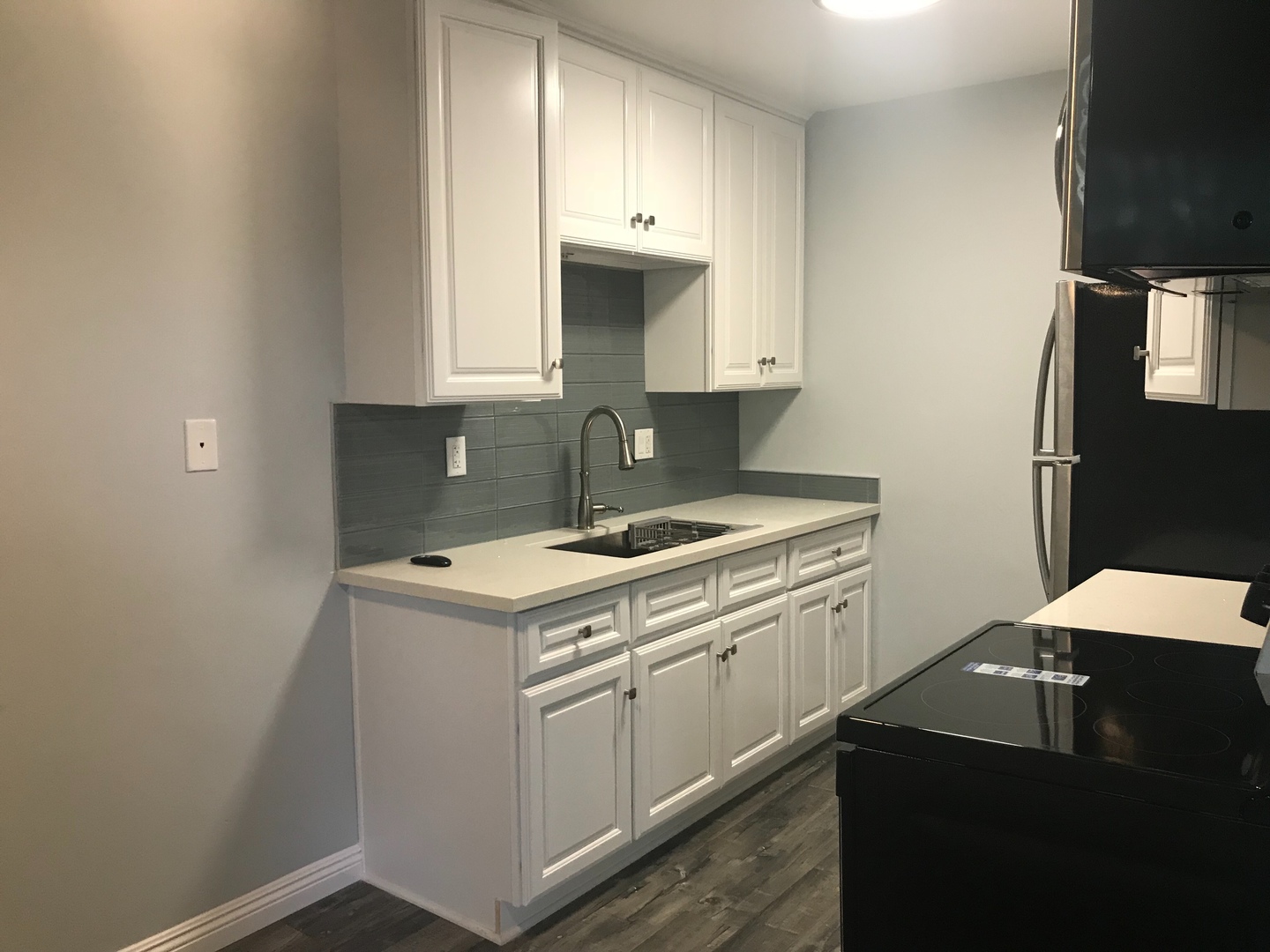 Recently remodeled 2 bedroom/1 bathroom apartment with laminate wood flooring, new kitchen (new cupboards, quartz countertops, stainless steel fridge, range, and microwave oven) and bathroom, fresh paint, new light fixtures and ceiling fans, and large closets. Frontier FiOS ready, on-site laundry room, and Amazon lockers.